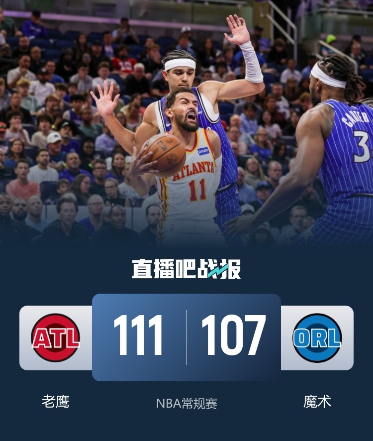 老鹰逆转胜魔术!特雷-杨25+6 小瓦格纳27+6 班凯罗失准11分