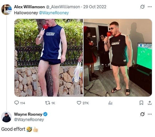 自称鲁尼超级粉丝的亚历克斯-威廉姆森,在2022年万圣节穿上了几乎一模一样的服装,而此举成功引起了鲁尼本人的注意。鲁尼在威廉姆森发布在照片下方评论道:“厉害。”